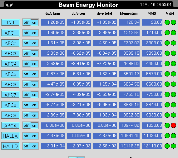 In either event, since the energy in hall A was ~5 MeV high, arcs 1 and/or 2 are in error since they appear to be on design.