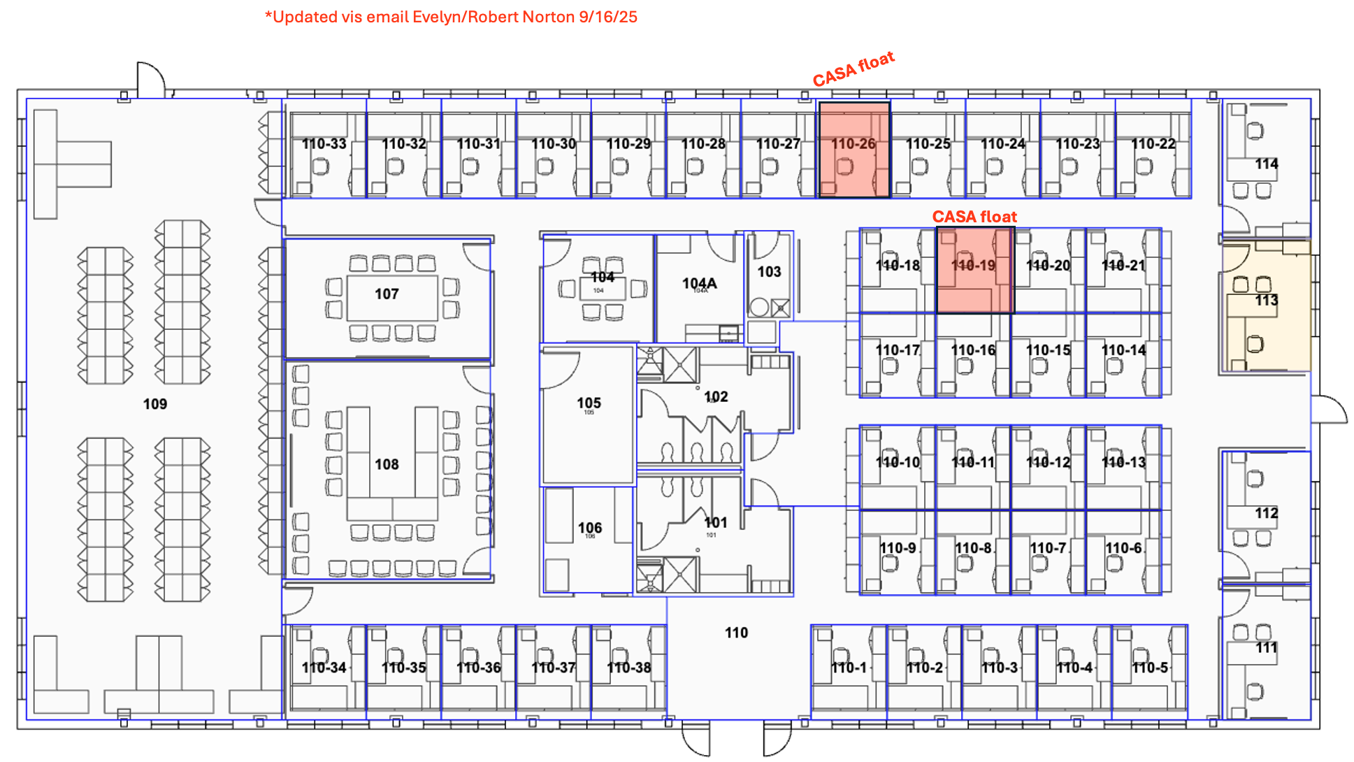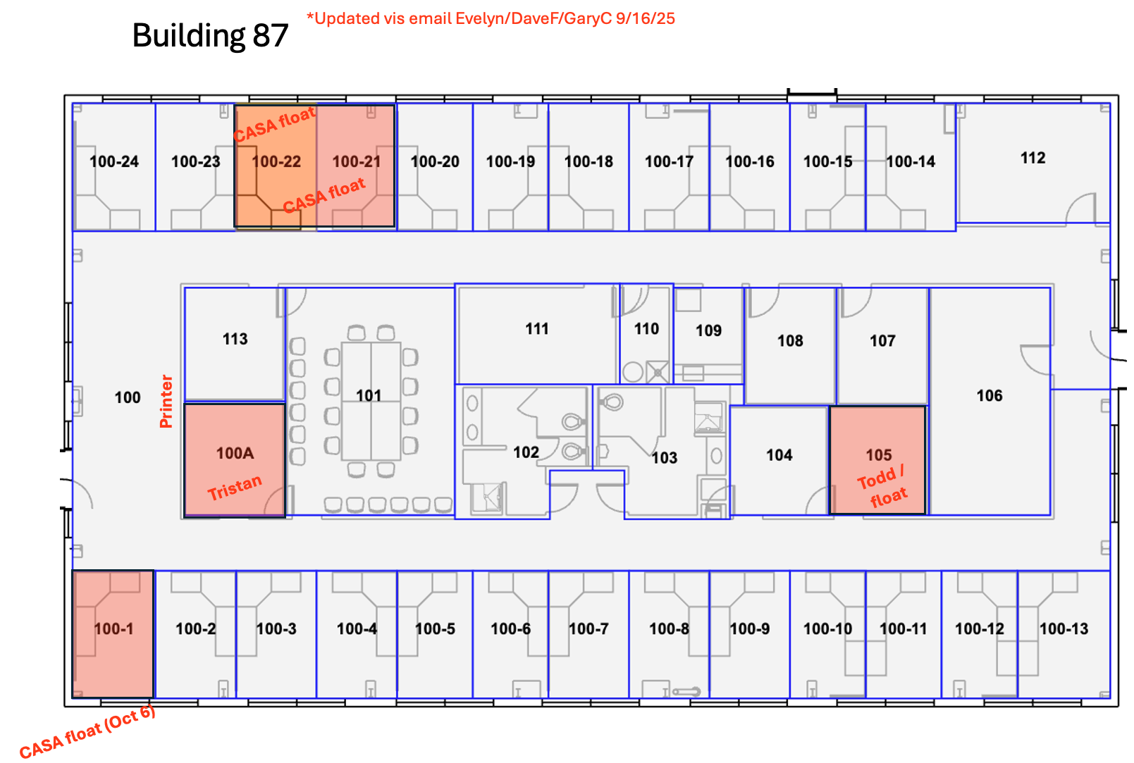Here's an update on available spaces for CASA in Buildings 87 and 89