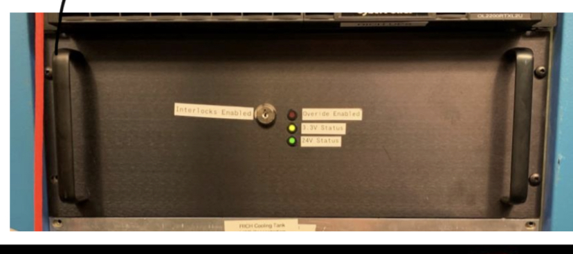 On the back of the hardware interlock chassis for RICH S1, there is a 24 V DC input connector (photo of the front of the chassis is attached).