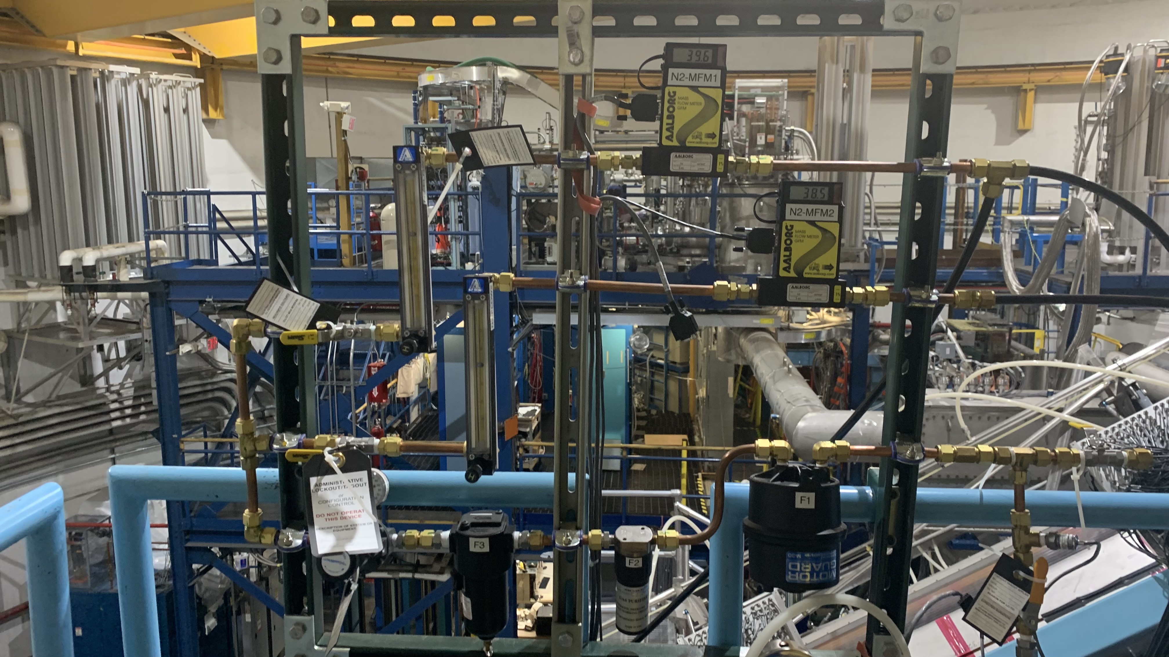 You can also see in the photo that the panel has several white, tags attached to the valves and rotameters.