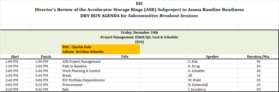 [Eicatjlab_admins] [EXTERNAL] Dry Run for SC6 Project Management, ES&H, QA, Cost/Schedule - ASR Subproject to Assess Baseline Readiness