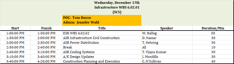 Sent on behalf of Charles Folz, ASR Subproject Manager, Division Director Infrastructure.