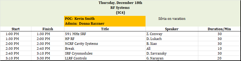 Updated Agenda-- speaker for HP RF is now D. Lukach. Not other changes.