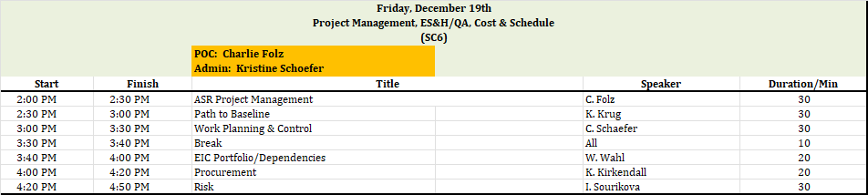 [Eicatjlab_admins] [EXTERNAL] Notes from Today's Dry Run for SC6 Project Management, ES&H, QA, Cost/Schedule - ASR Subproject to Assess Baseline Readiness