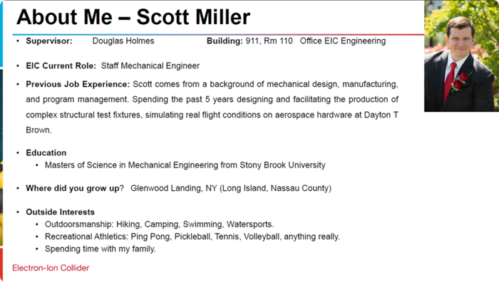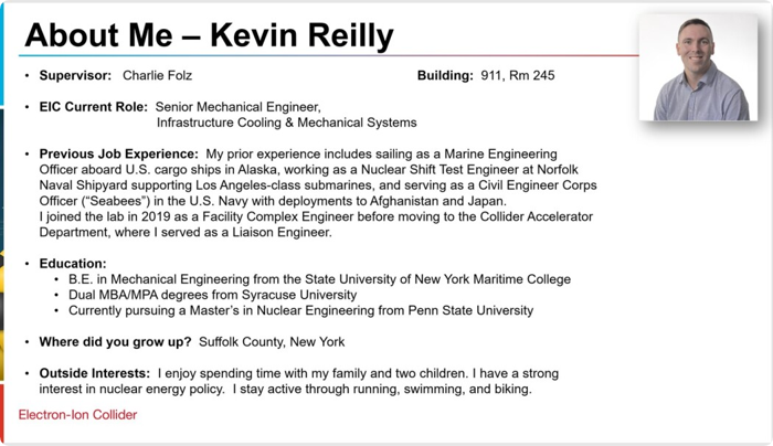 In recent years, my work has focused on the Superconducting Radio Frequency (SRF) testing facility at AGS, and more recently on the EIC cryogenic piping systems. Since SRF cavities must be tested before installation, a dedicated testing facility is essential. Cryogenics play a critical role in the EIC, as superconducting magnets and radiofrequency cavities must be cooled below -452 degrees Fahrenheit (4.5 Kelvin) to achieve superconductivity.