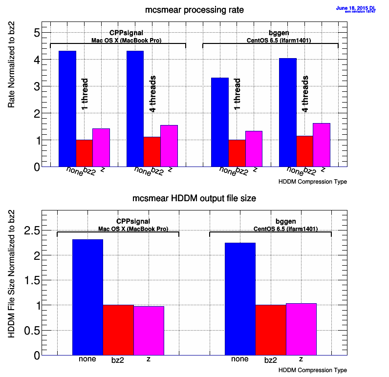 2. HDDM has multiple options for compressing the data stream on the fly that include: no compression, bz2 compression, zlib compression. The default for mcsmear prior to revision 18781 (committed today) was to use bz2 compression. With revision 18781 this was changed to use zlib compression by default.