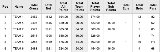 Danny "Fore-ever Winning" Forehand with a career-low score of 47. Leading Team 3 with 20 points to secure a crushing win over Team 2.