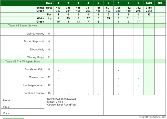 As we traditionally have done in the past, Whit has selected the Deer Run course (aka Championship course) for the finals. As some will notice, #6 is listed as partially closed. The work seen was near the tee box, but not sure how far along they will be by the end of the day.