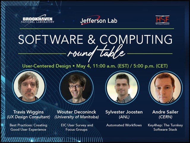 The topic of the Software & Computing Round Table in May will be “User-Centered Design.” On Tuesday, May 4 at 11 a.m. (EDT) / 5:00 p.m. (CET), we will explore how to create a good user experience and how to empower users who are not software & computing experts. We will discuss how to improve our software stack to make it easier for all types of users to actively participate in simulations and data analysis: