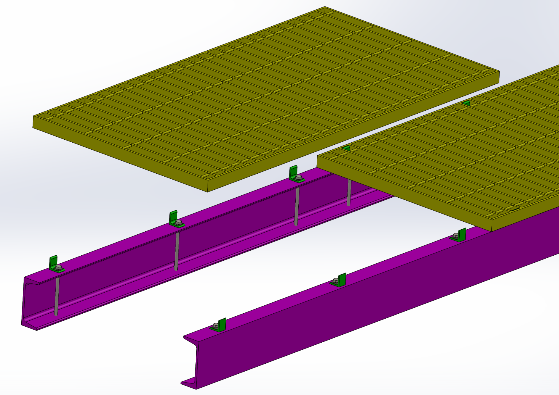 with ¼-20 bolts spaced 18” apart. The “L” brackets will keep the grating