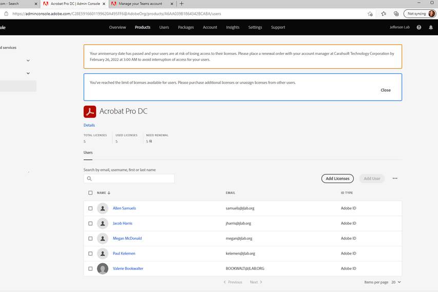 Admin Console<https://urldefense.proofpoint.com/v2/url?u=https-3A__postoffice.adobe.com_po-2Dserver_link_redirect-3Ftarget-3DeyJhbGciOiJIUzUxMiJ9.eyJ0ZW1wbGF0ZSI6ImJsZXRoZXJfcmVzZWxsZXJfYWRtaW5fcmVuZXdhbF9vcmRlcl9wcm9jZXNzZWRfZnVsbF9vcl9wYXJ0aWFsIiwiZW1haWxBZGRyZXNzIjoiQk9PS1dBTFRASkxBQi5PUkciLCJyZXF1ZXN0SWQiOiI3OGRhZGM1Ni1lYjk1LTRjNzYtODE1ZS0xY2QwNjhjMmE5NjQiLCJsaW5rIjoiaHR0cHM6Ly9hZG1pbmNvbnNvbGUuYWRvYmUuY29tLyIsImxhYmVsIjoiNSIsImxvY2FsZSI6ImVuX1VTIn0.Yy0EpHRYVuleC6U7VYgJXviOhULcURH5ZrKaZikCwWzN355dnXsxqDJAv4nyj4qKjxGIEOR7rwf5vhDbNBnogw&d=DwMFaQ&c=CJqEzB1piLOyyvZjb8YUQw&r=aYqUCPYT_88Bj0dWUVdMaJfxMdMxnE6zbzxulqpTgEw&m=7ng2Bw2QMuE-5FTPQJC2XM_EIylDQ-cxF97s-6sUDLbozyskfNVwzoOuAarpkNib&s=ikVs-NGY9REtL1p7HQ-V4xf5mY1UW3Y6fdRhu8SLkw4&e=>
