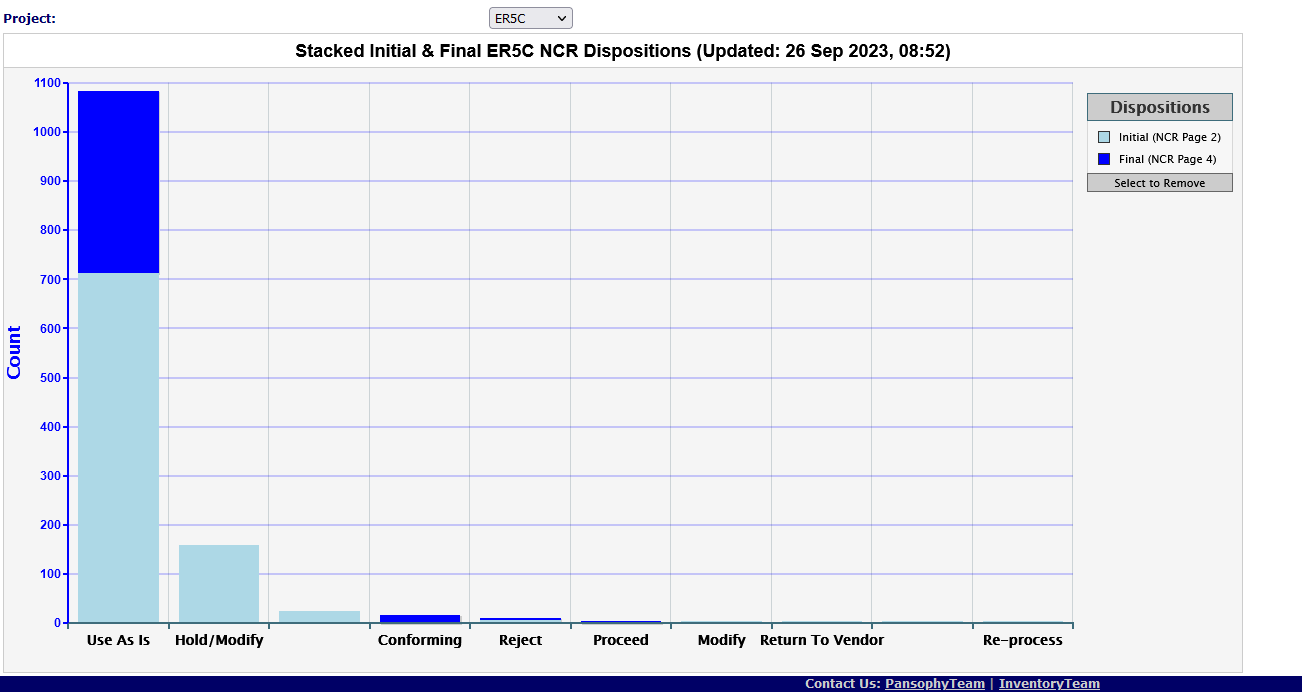 This comes from: QC->NCR Reports->NCR Stacked dispositions.
