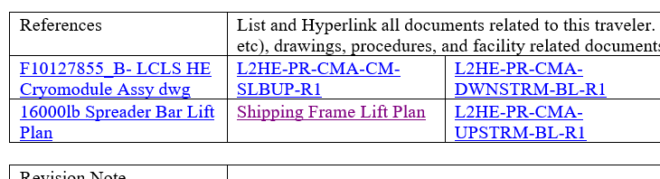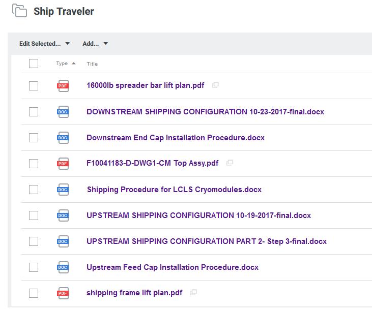 [Contains] 02 - Closed<https://jlabdoc.jlab.org/docushare/dsweb/View/Collection-16192> [Contains] 1.17 LCLS-II (L2P) - Joe Preble<https://jlabdoc.jlab.org/docushare/dsweb/View/Collection-21597> [Contains] 1.17.04.006.007 LCLS- II Project - Cryomodule Prod...<https://jlabdoc.jlab.org/docushare/dsweb/View/Collection-20907> [Contains] 07 - Process Documents/Travelers (L2CP01)<https://jlabdoc.jlab.org/docushare/dsweb/View/Collection-20921> [Contains] Travelers Included Files - (L2PRD)<https://jlabdoc.jlab.org/docushare/dsweb/View/Collection-20924> [Contains] Ship Traveler<https://jlabdoc.jlab.org/docushare/dsweb/View/Collection-38712> Listing