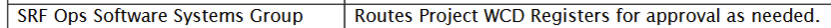 The Project Coordinators are responsible for maintaining the WCD Register. Major changes are routed for approvals by SSG and minor changes are simply made, noted in the rev log and the PC can upload to Docushare themselves. Major and minor changes are defined in the document linked above.