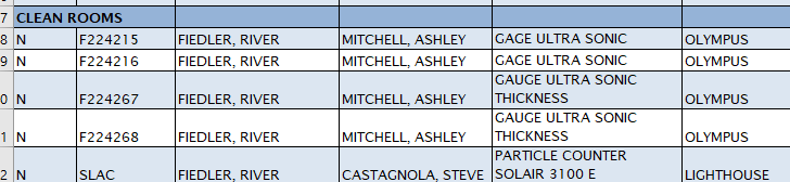 In the CAV-CHEM Register, I should not be listed as cal custodian for the thickness gauges.